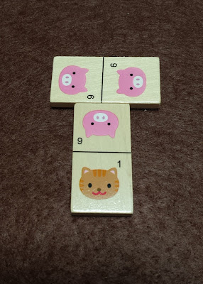 普通のドミノがサイコロ模様なのに対して、これは小さい数字と動物の絵が描かれている子供用のドミノです。